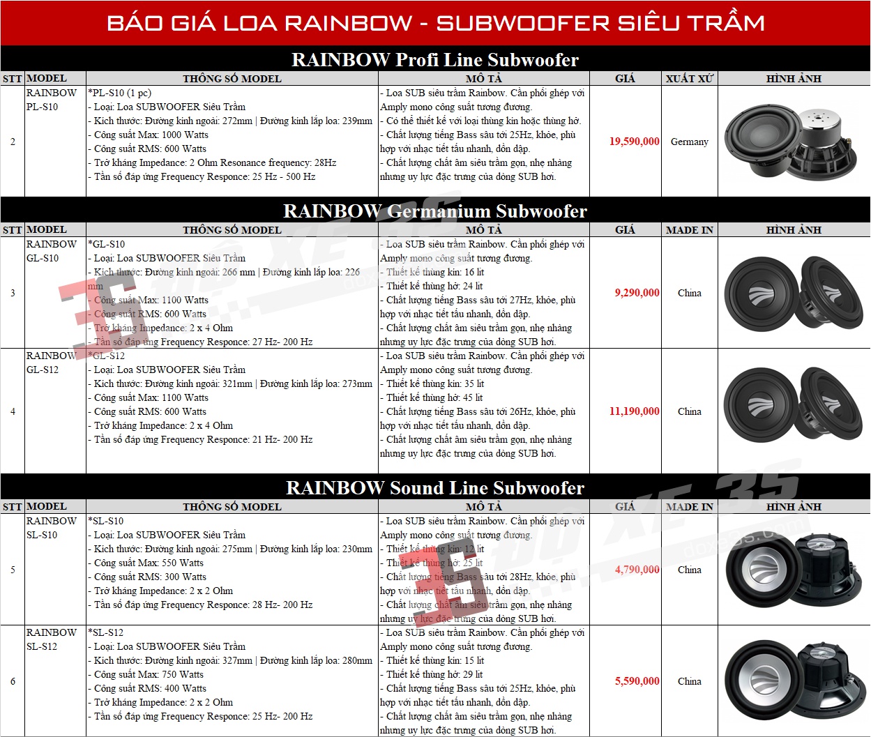 #. Báo giá dòng loa SUB hơi của Rain Bow