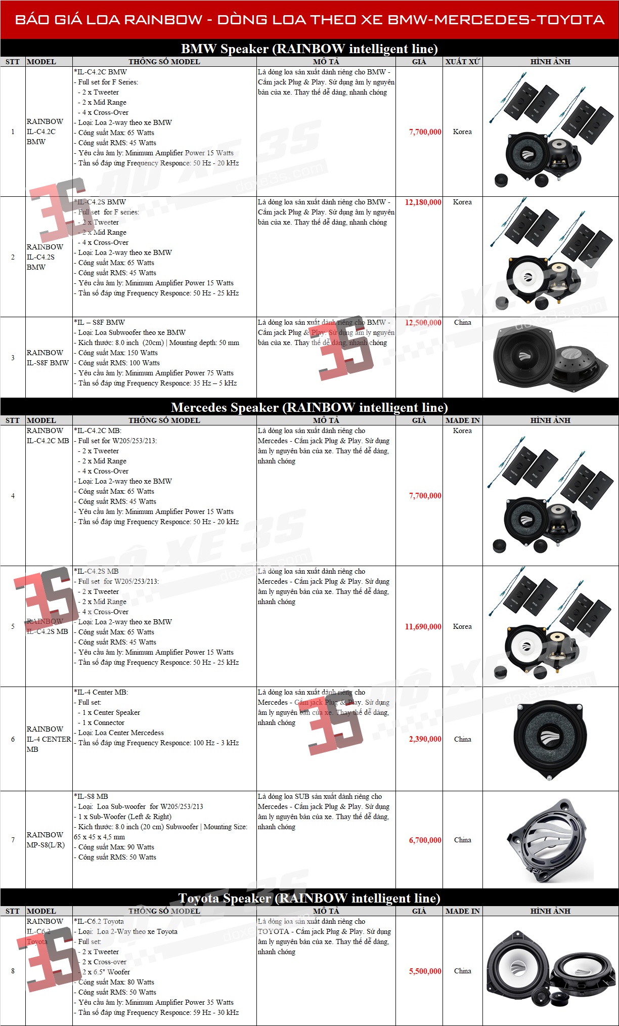 Hãy kết hợp báo giá tham khảo & sự tư vấn của chúng tôi, để cân nhắc các dòng loa RainBow trước khi nâng cấp chất lượng nghe nhạc trên chiếc xe của mình.