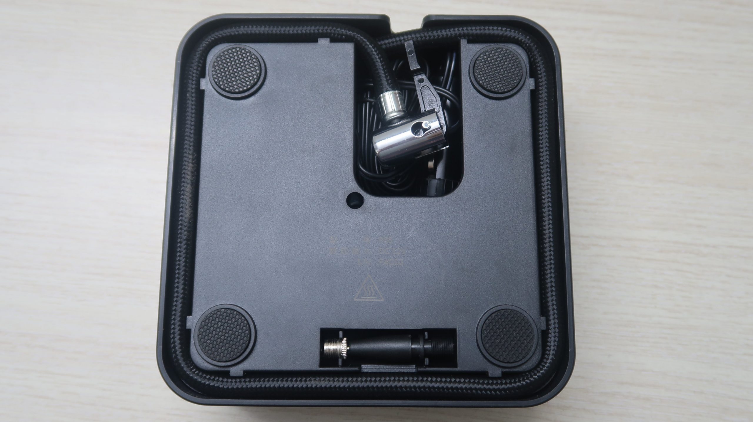 - Bước 1: Gắn van ở đầu bơm vào van lốp xe của bạn và cắm tẩu điện 12 vol trong xe (xe phải nổ máy để đảm bảo nguồn điện.