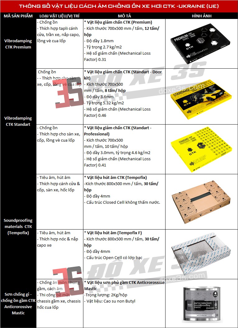 Chúng tôi đã chọn lọc & đưa về Việt Nam các model vật liệu cách âm chống ồn xe hơi hiệu quả của CTK , phù hợp với môi trường & điều kiện giao thông tại Việt Nam như