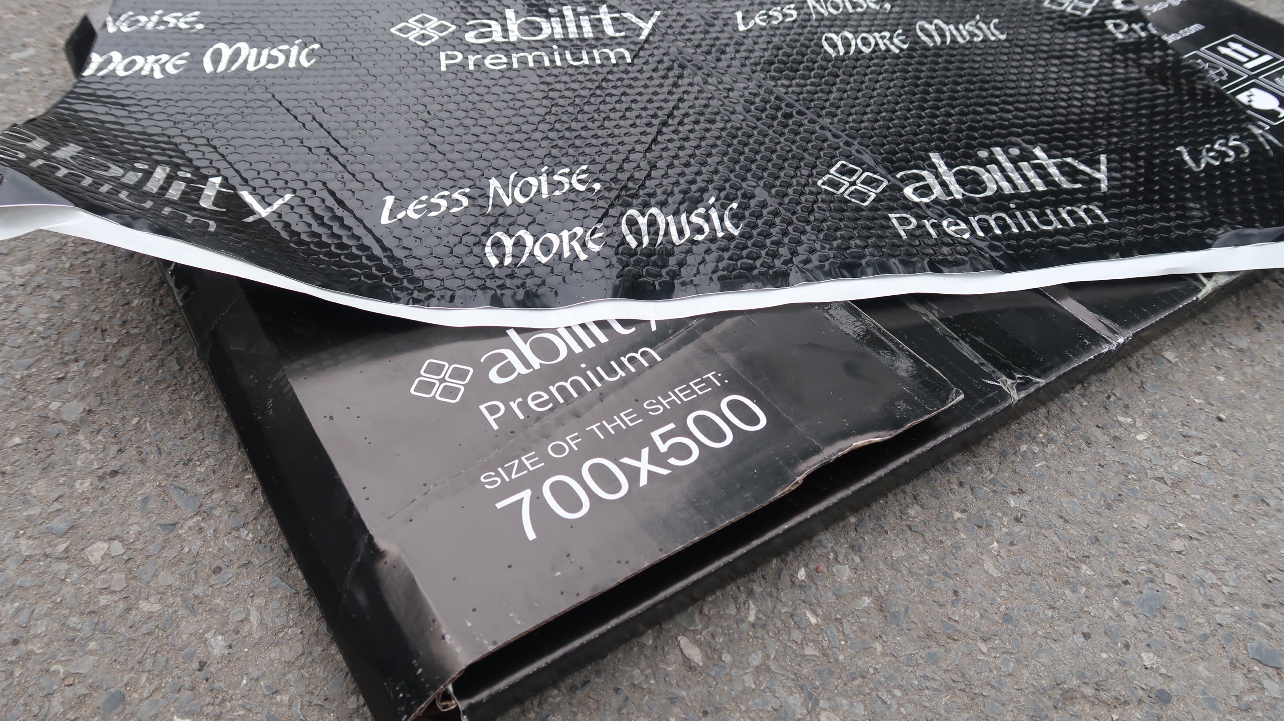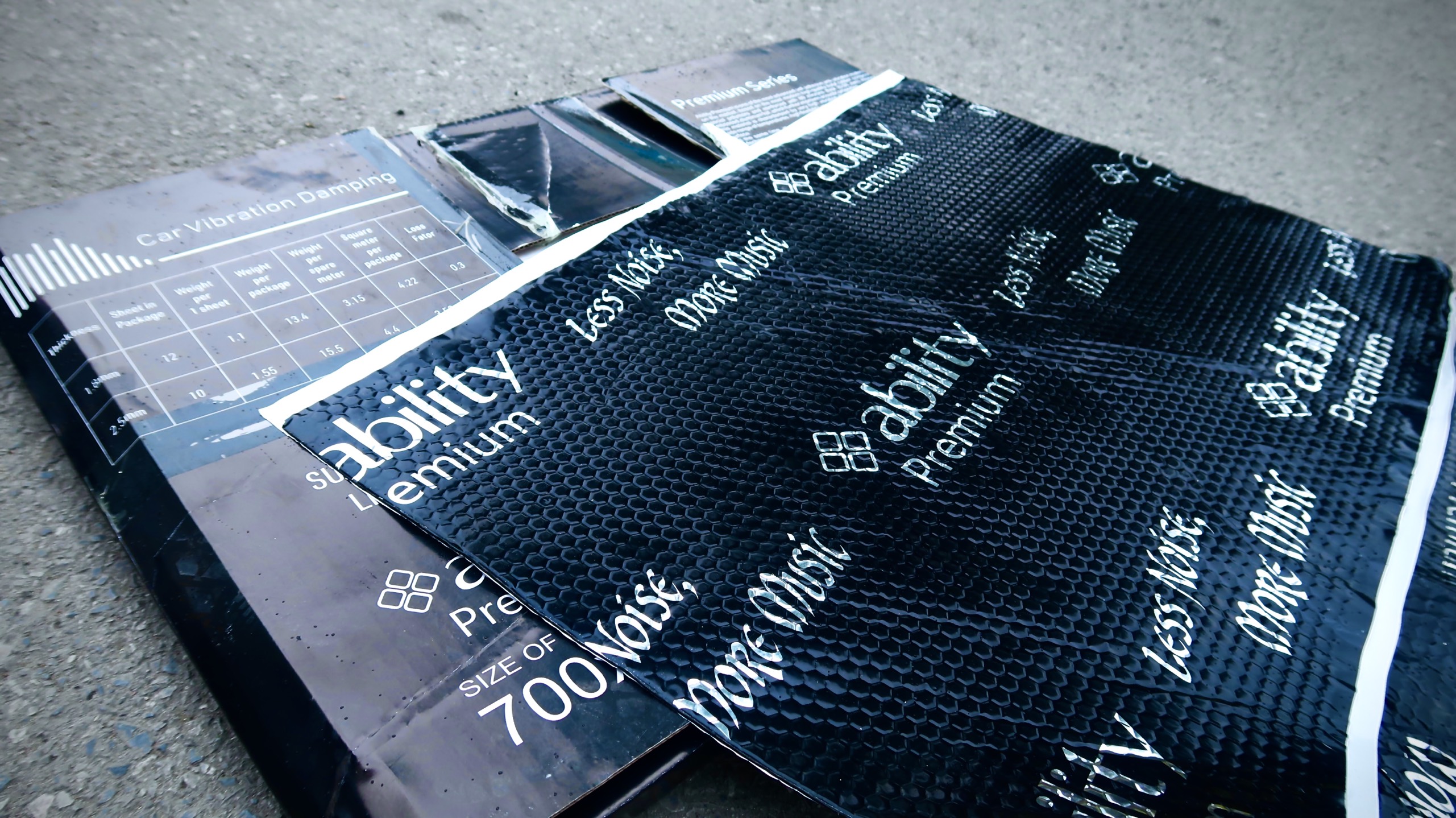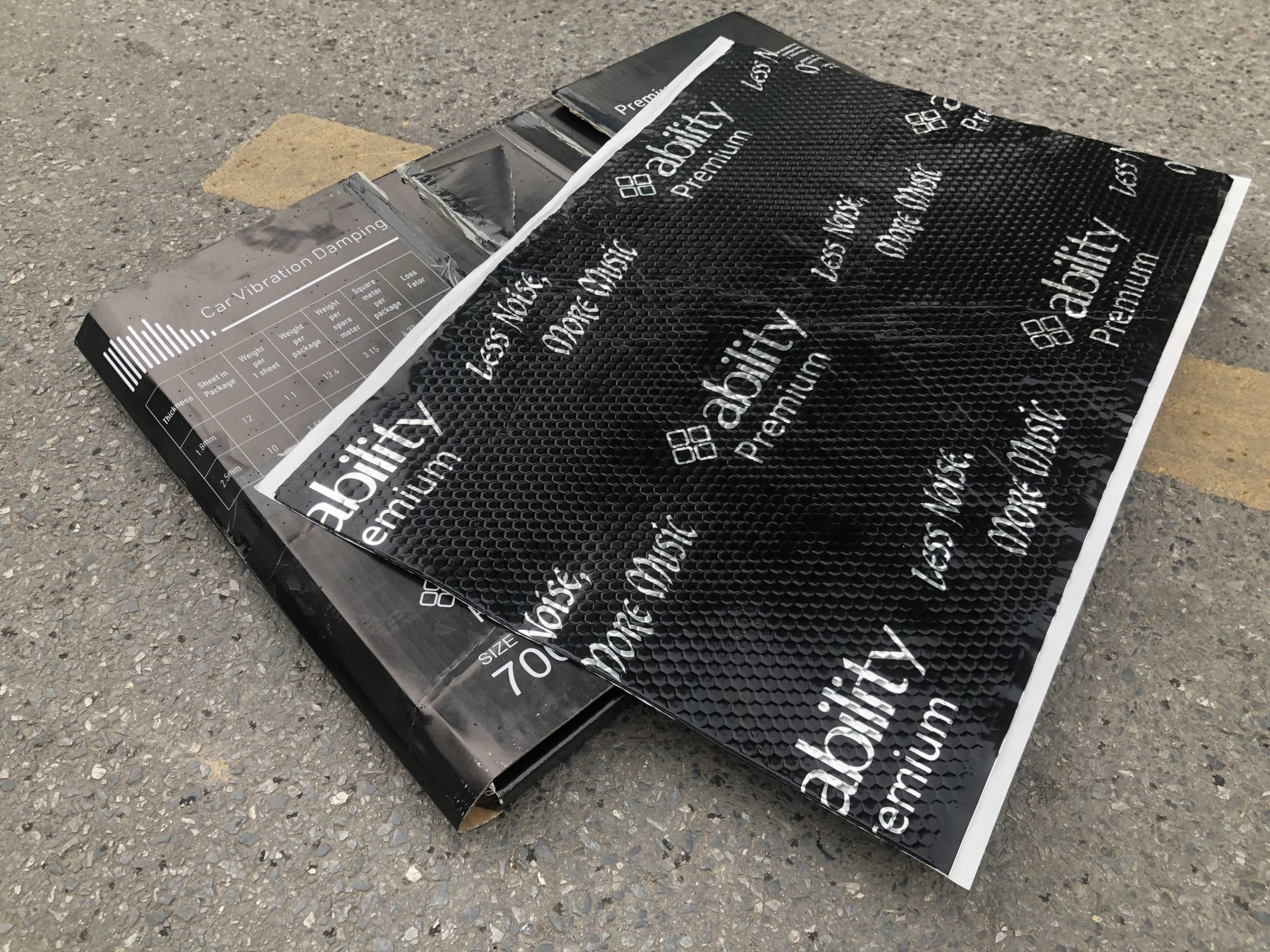 Tấm damping gồm 2 lớp: 1 lớp nhôm chắc chắn và một lớp cao su butyl nguyên nhất tăng độ bám dính.