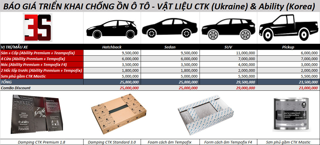 Đây là bảng giá niêm yết dán chốn ồn với vật liệu abilty và cánh âm CTK