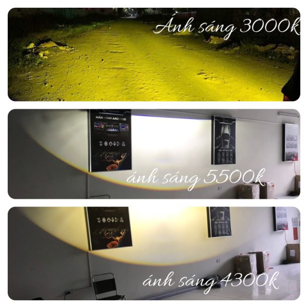 Màu sáng trắng, Vời công dụng trợ sáng mạnh mẽ. Phù hợp đi trên quáng đường tối và vắng. Hỗ trợ ánh sáng cho đèn pha ô tô.