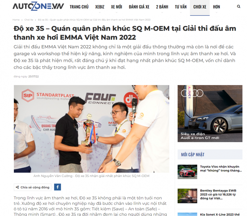 Độ xe 3s đạt giải nhất emma 2022 giải thi đấu âm thanh ô tô phân khúc SQ – OEM