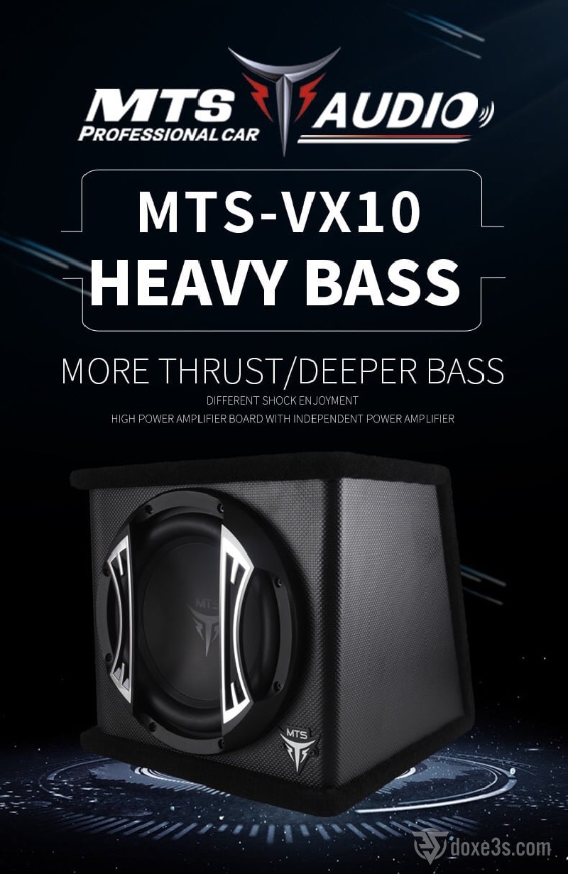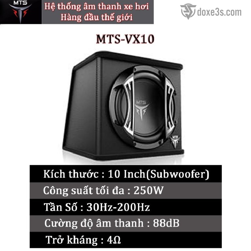 Model loa SUB hơi ô tô MTS-VX10 là mẫu loa trầm ô tô đặt sau cốp xe bán chạy nhất của MTS. Với ưu điểm: Giá rẻ – Tích hợp sẵn amply mono – nhỏ gọn & phù hợp với nhiều dòng xe khác nhau.
