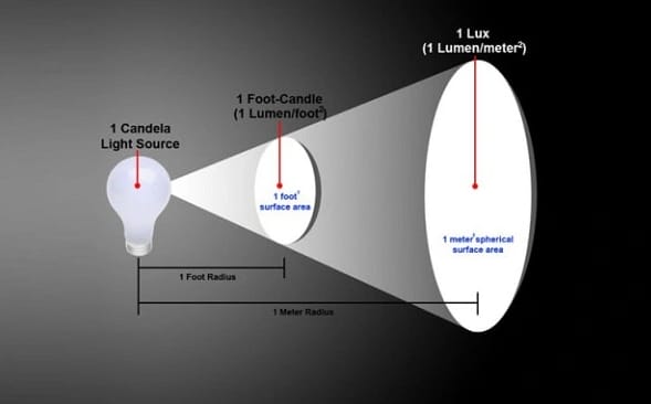 Ví dụ: một đèn LED 1000 lumen chiếu lên diện tích 1 mét vuông sẽ tạo ra độ rọi 1000 lux. Nhưng nếu chiếu trên diện tích 10 mét vuông thì độ rọi giảm xuống chỉ còn 100 lux.
