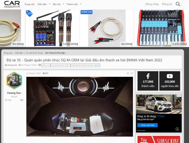 Độ xe 3s đạt giải nhất emma 2022 giải thi đấu âm thanh ô tô phân khúc SQ – OEM