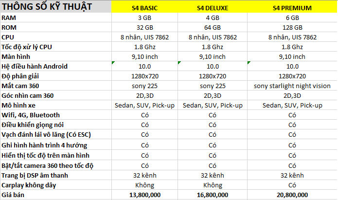 Elliview S4 hiện tại được trang bị 3 cấu hình cơ bản cho chúng ta lựa chọn. Tùy theo nhu cầu và điều kiện tài chính để lựa chọn cấu hình phù hợp. Elliview S4 đáp ứng đầy đủ các nhu cầu cơ bản cho người dùng thường xuyên sử dụng các ứng dụng như dẫn đường, nghe nhạc chất lượng cao, cần tốc độ. Và yêu cầu bật nhiều tab mà không ảnh hưởng tới tốc độ vận hành.