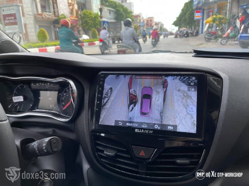 Chất lượng Camera 360 của Elliview S4 Deluxe rất sắc nét, hiển thị xung quanh xe & có giả lập đánh lái theo volang.